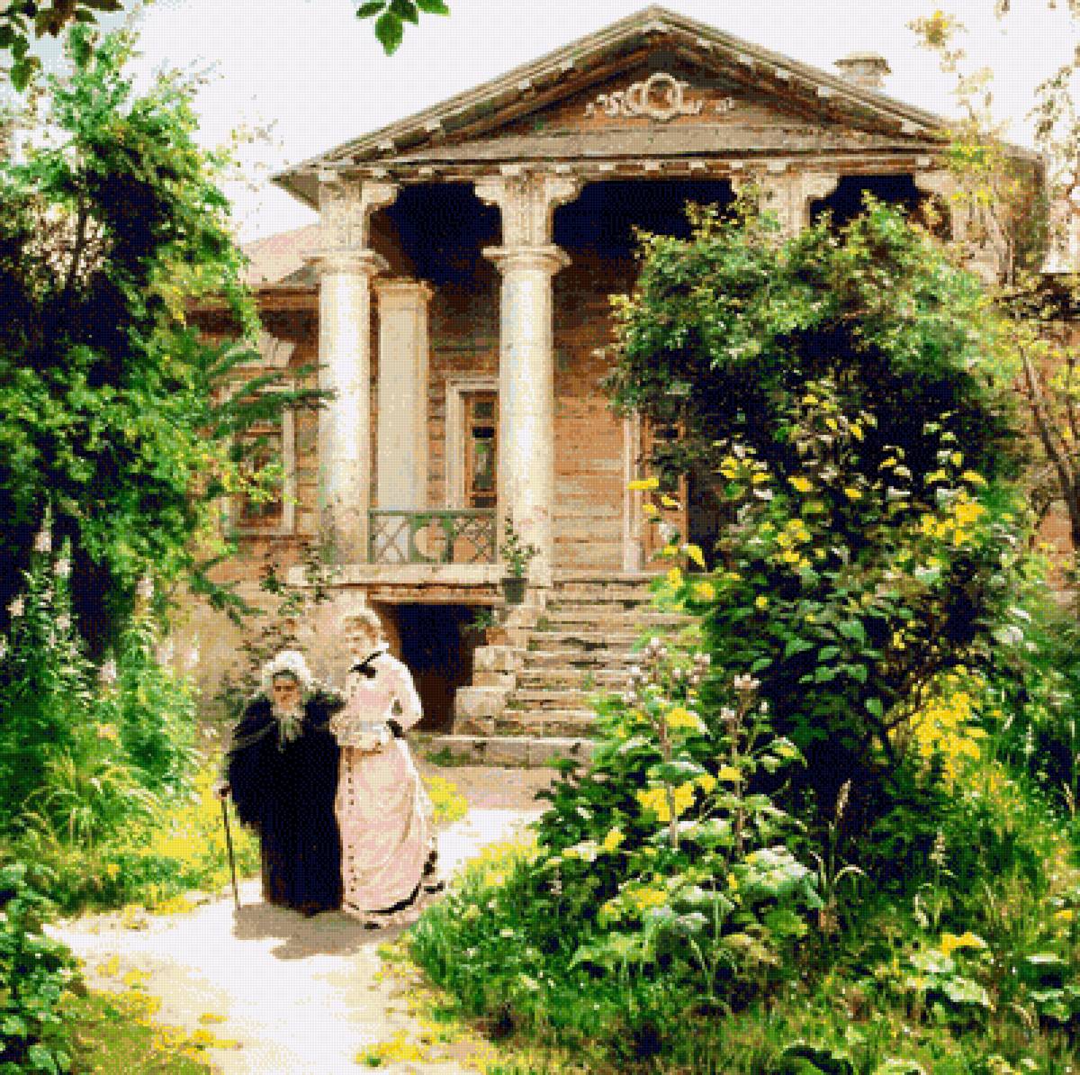 Схема вышивки «по мотивам картины "Бабушкин сад"» (№1869215)