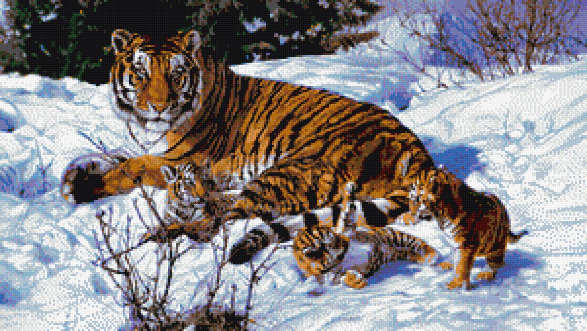 Схема вышивки «Тигрица с котятами в снегу» (№1878349)