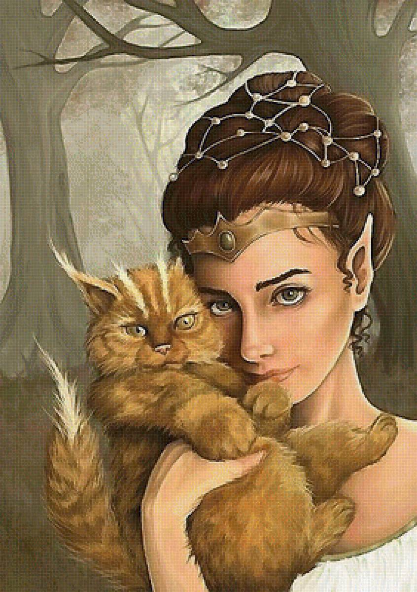 Схема вышивки «девушка с котом» (№1889027)