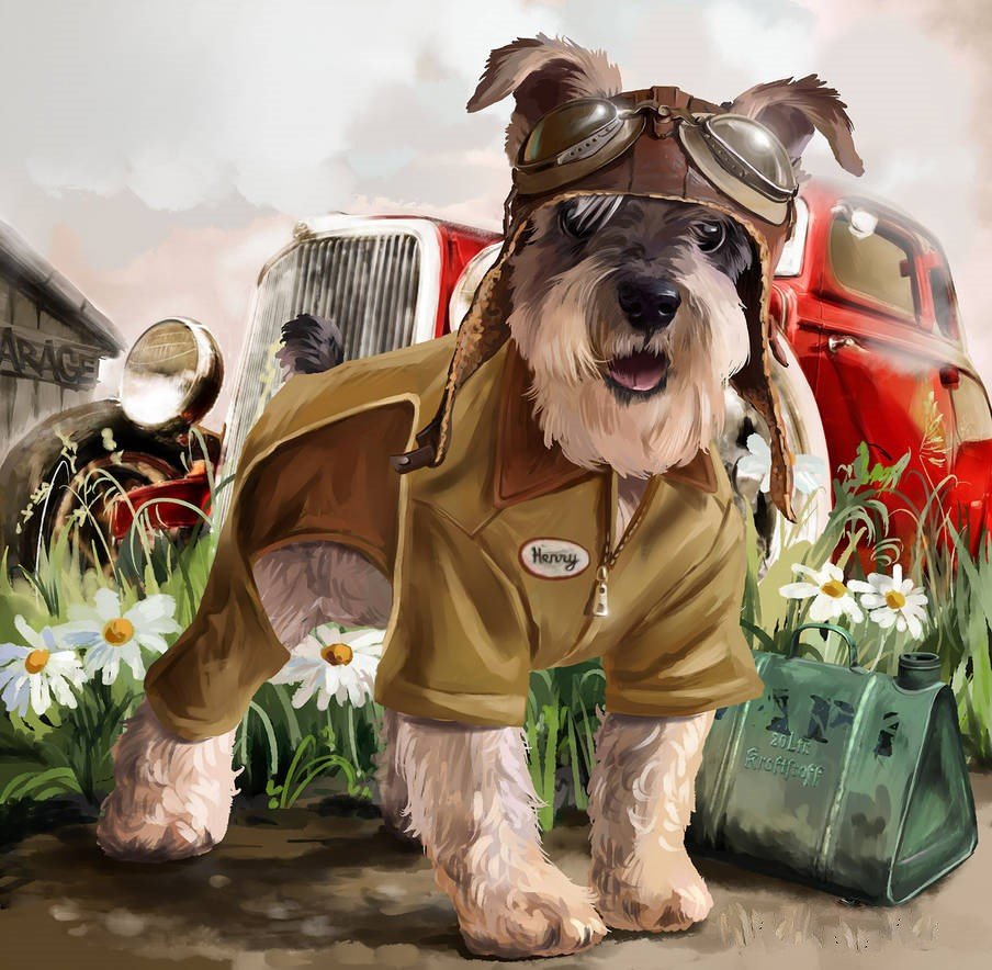 Теги: животные, собака, рисунок, пес, птички.