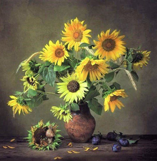 Теги: цветы, подсолнухи, букет, натюрморт.