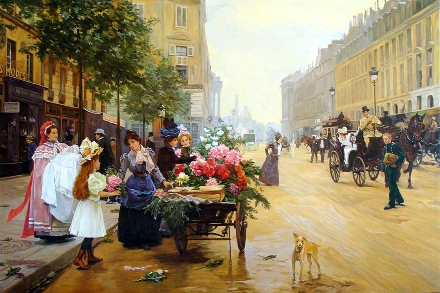 Схемы вышивки, похожие на «покупка цветов» (№1911971) по сюжету