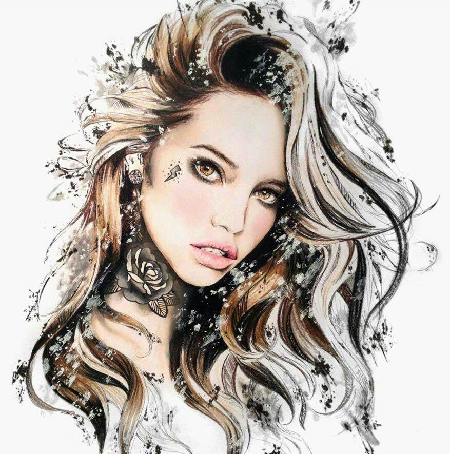 Теги: рисунок, девушка, emma leonard, монохром, цветы, портрет.