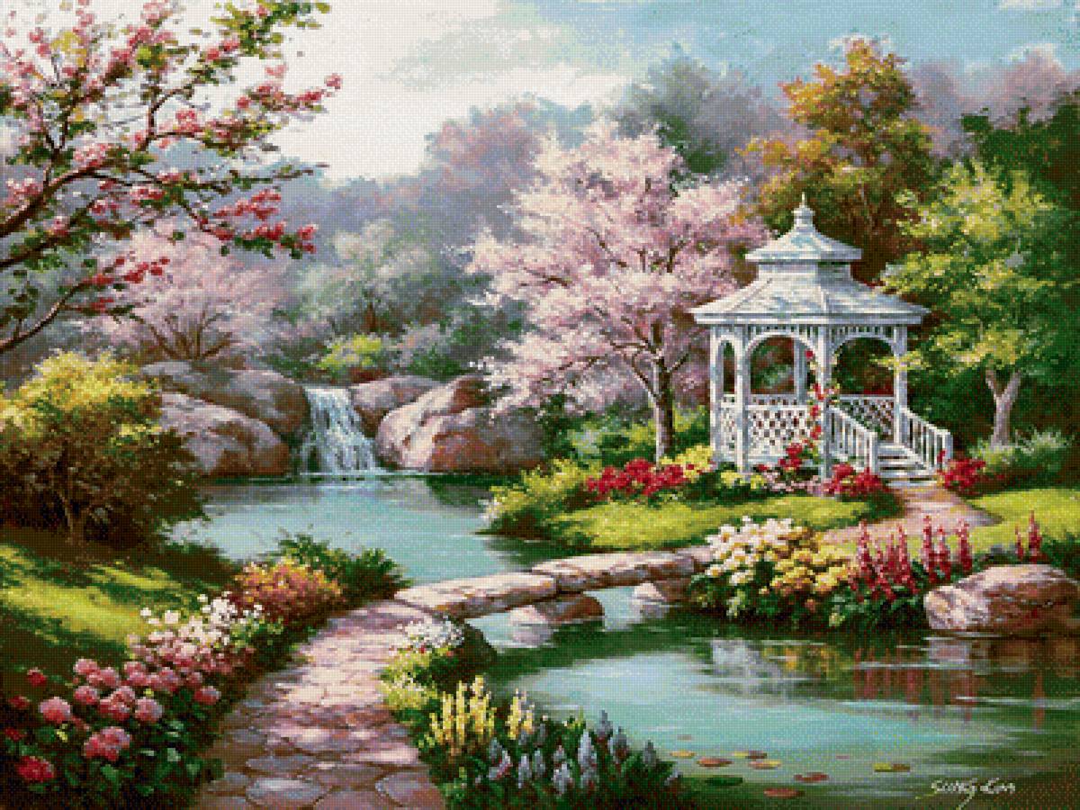 Теги: беседка, tomas kinkade, природа.