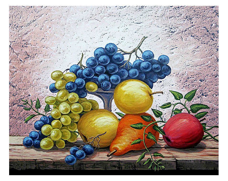 Теги: натюрморт картина корзина виноград яблоки.