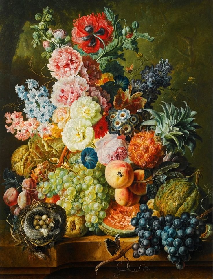 Теги: фрукты, живопись, натюрморт, цветы, букет.