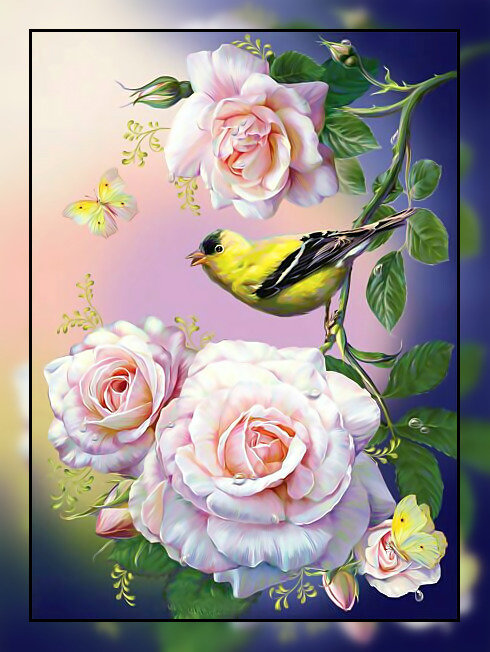 Схема вышивки «Розы и птичка2.» (№1945301)