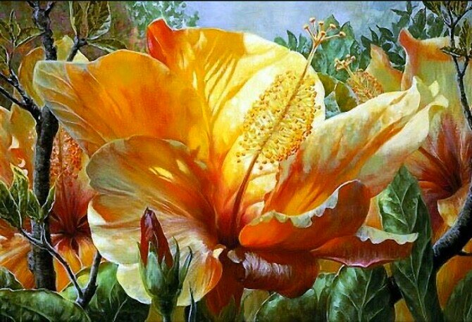 Теги: картина, голубые цветы, гортензия, цветы, фиолетовые цветы.