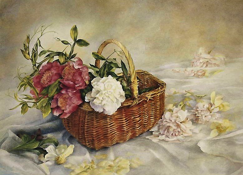 Теги: букет, живопись, белые цветы, пионы, цветы, цветы в вазе, натюрморт.