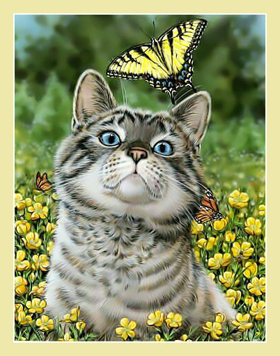 Схемы вышивки, похожие на «Котик и бабочка.» (№1953921) по сюжету