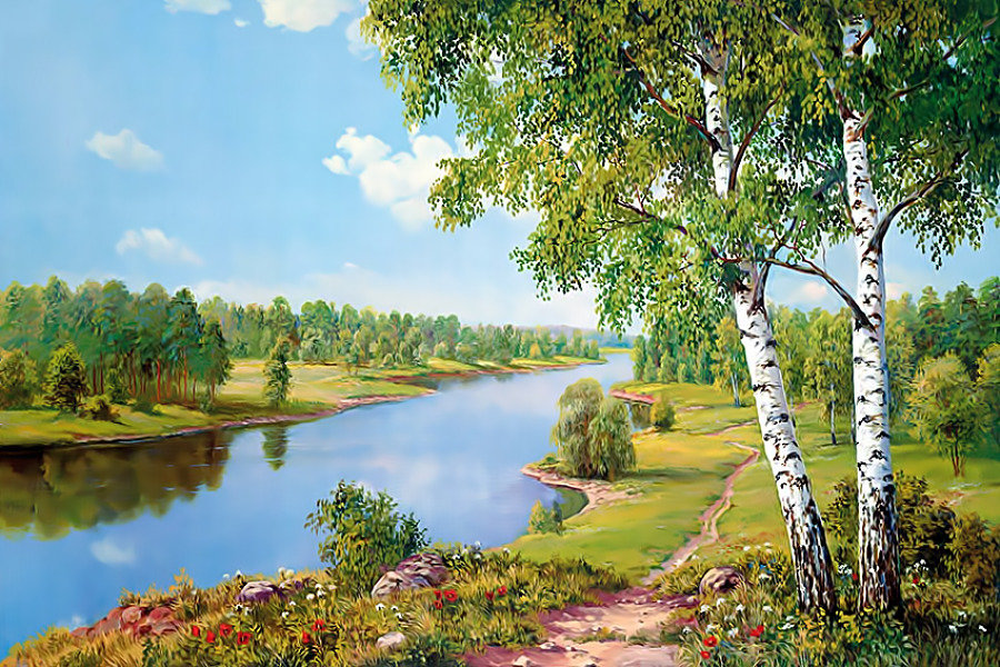 Схема вышивки «Пейзаж с берёзами.» (№1960612)