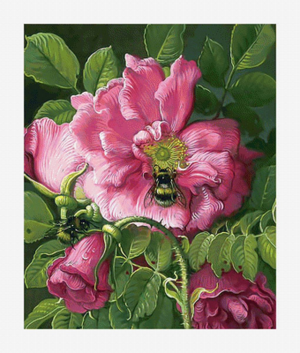 Схема вышивки «Шиповник и шмель. 286/346, 52/63 см.» (№1962574)