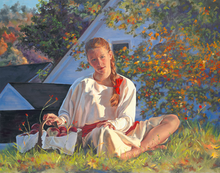 Схема вышивки «Девушка за сбором яблок» (№1974782)