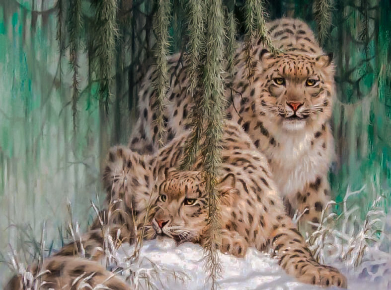Схемы вышивки, похожие на «Stunning Snow Leopard Pair-2.» (№1976361) по сюжету