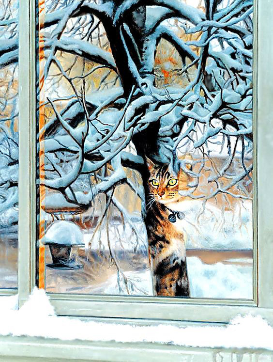 Теги: пейзаж, кошки, снег, кошка. животные, зима, коты, кот.