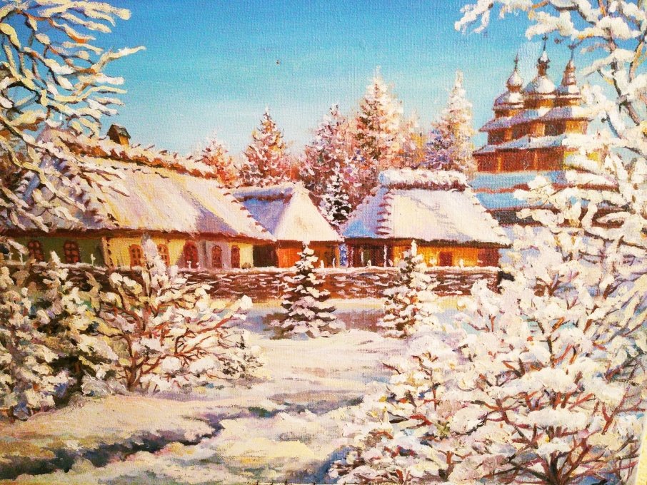 Теги: живопись, снег, лес, природа, мороз, пейзаж, зима.