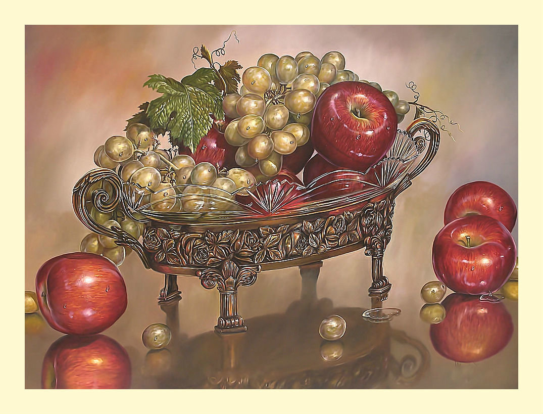 Теги: живопись., натюрморт, фрукты, вино, виноград.