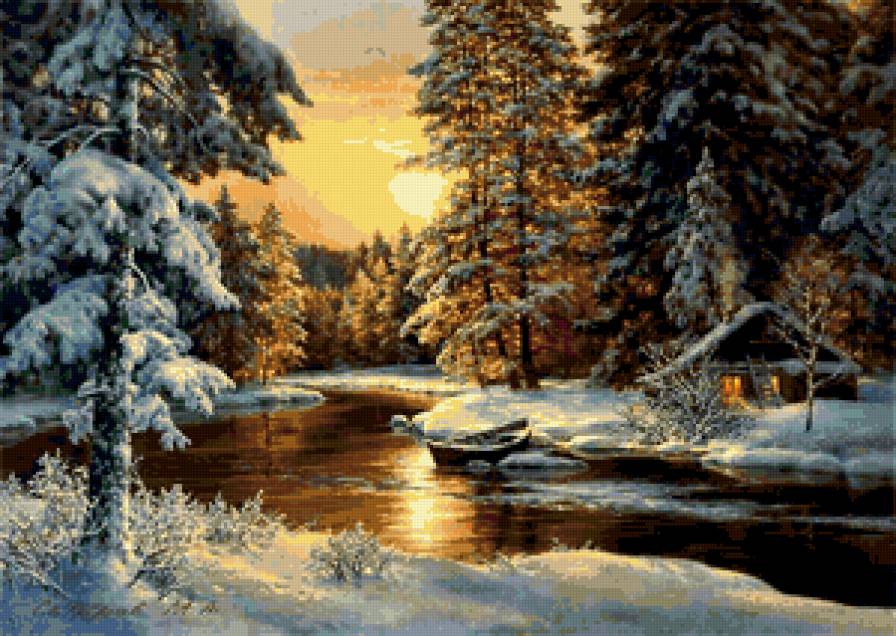 Теги: зима, снег, картина, природа. пейзаж, дом.