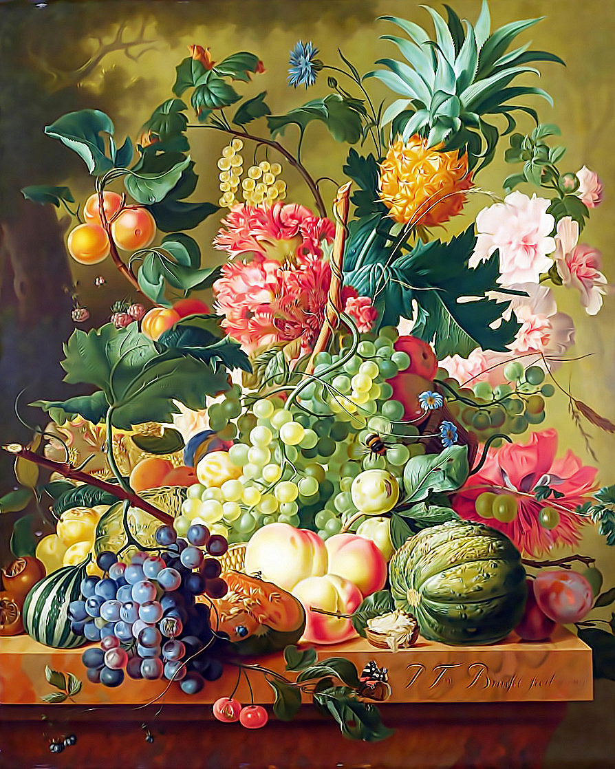 Теги: фрукты, цветы, натюрморт.