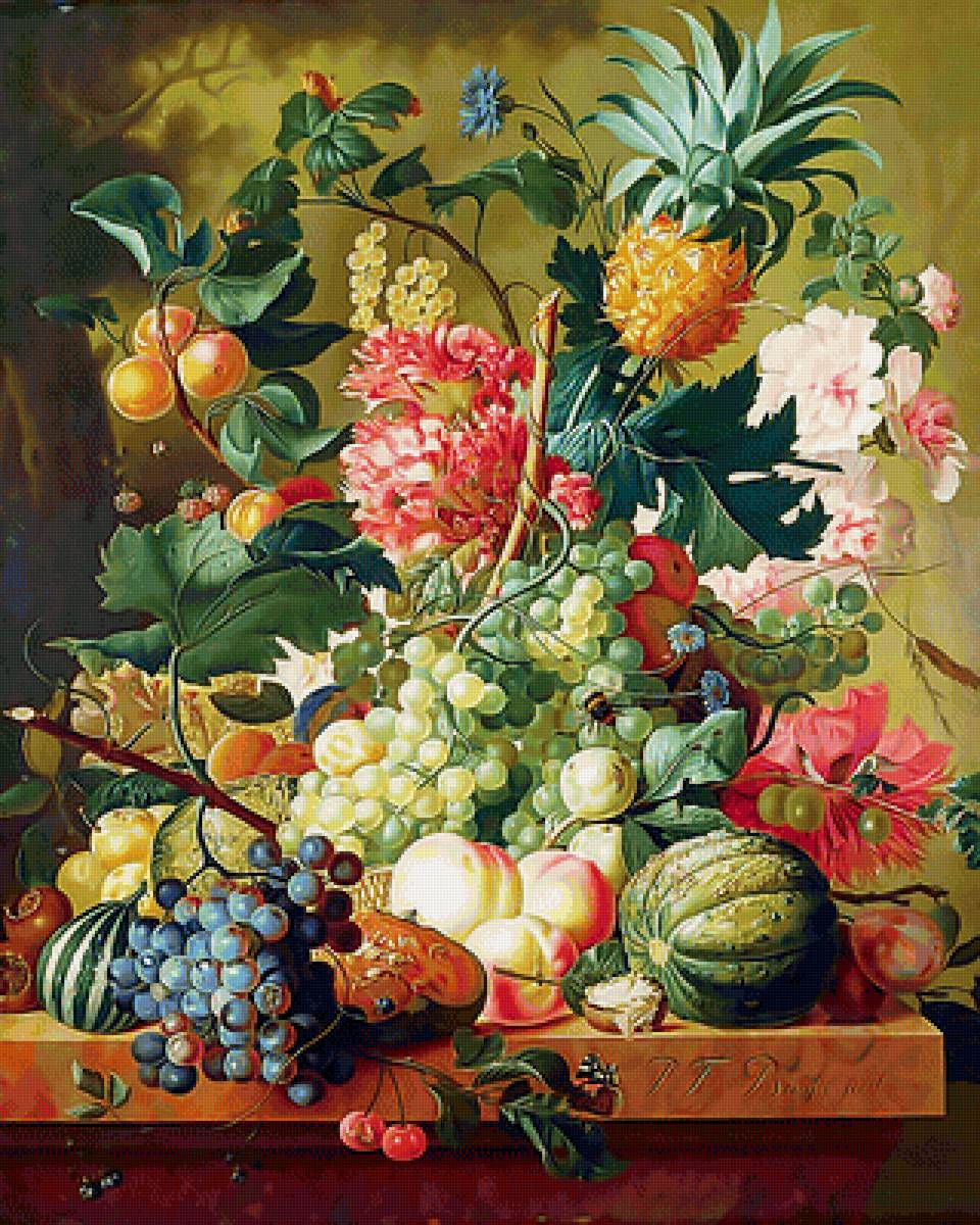 Схема вышивки «Натюрморт, цветы, фрукты» Натюрморт, цветы, фрукты
