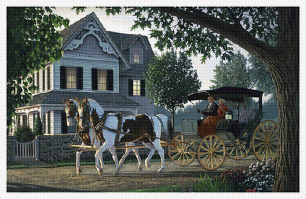 Схема вышивки «Летний пейзаж с экипажем.» (№2012700)