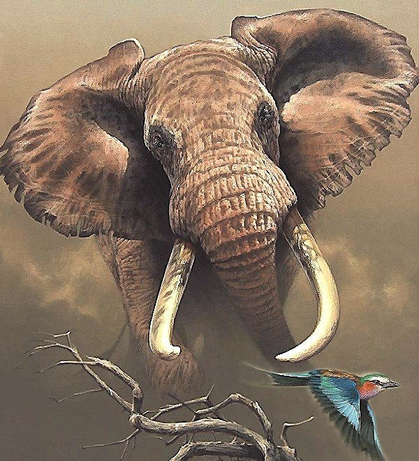 Теги: планета, арт, фэнтези, слон, тигр, животное.