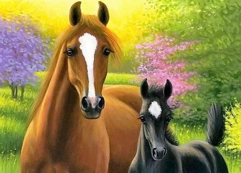 Теги: конь, лошадь, жеребенок, мама.