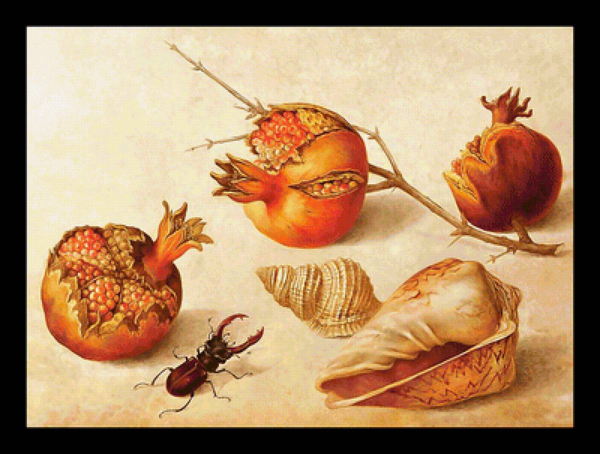 Схемы вышивки, похожие на «Серия "Натюрморты". Гранат и жук» (№2033413) по сюжету