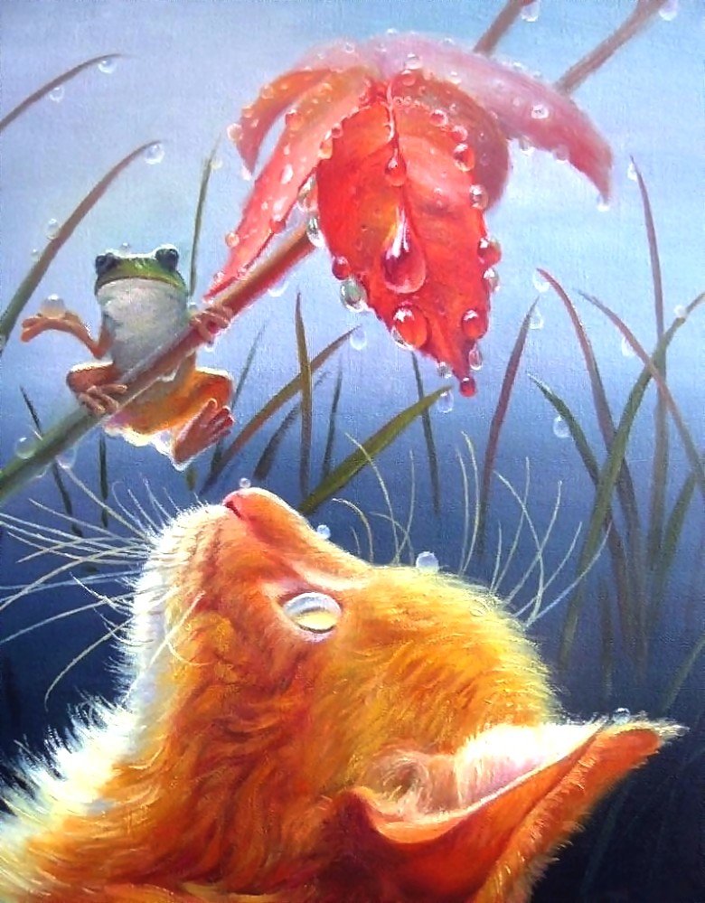 Теги: город, живопись, мост, пара, страсть, люди, дождь, поцелуй, зонт.