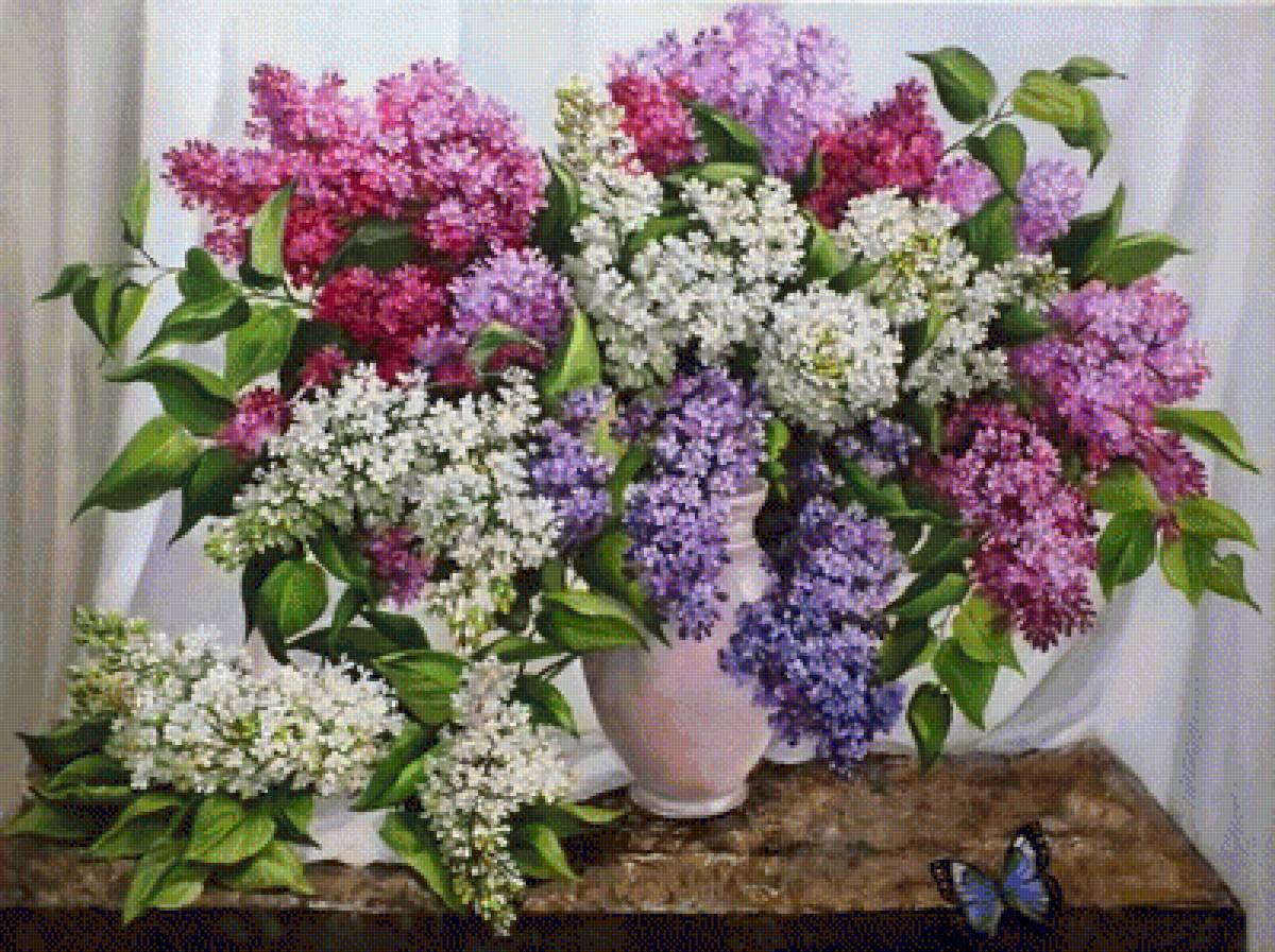 Теги: цветы, букет, живопись, сирень, картина.