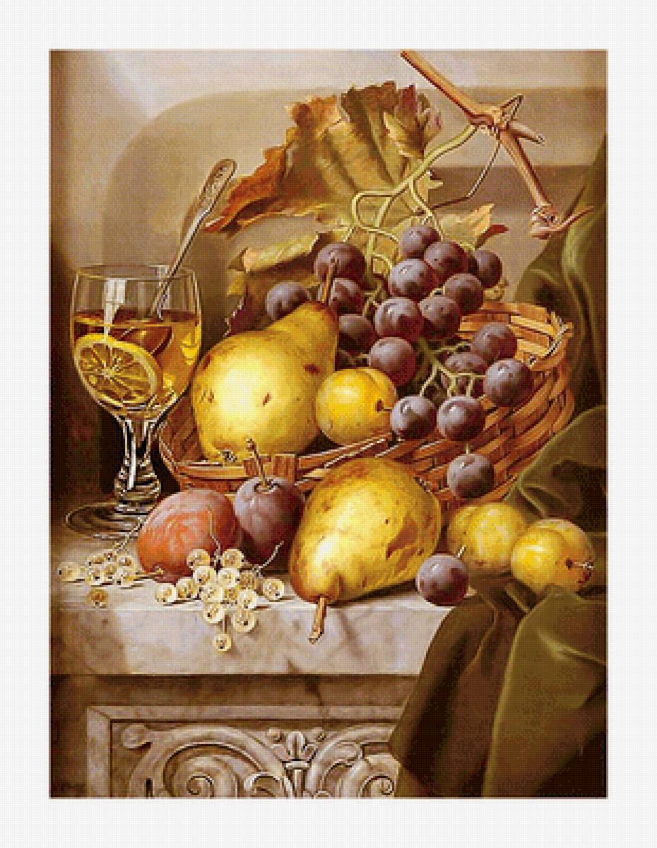 Теги: натюрморт, виноград, вино, фрукты.