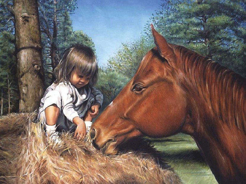 Схема вышивки «девочка и лошадь» (№2049311)