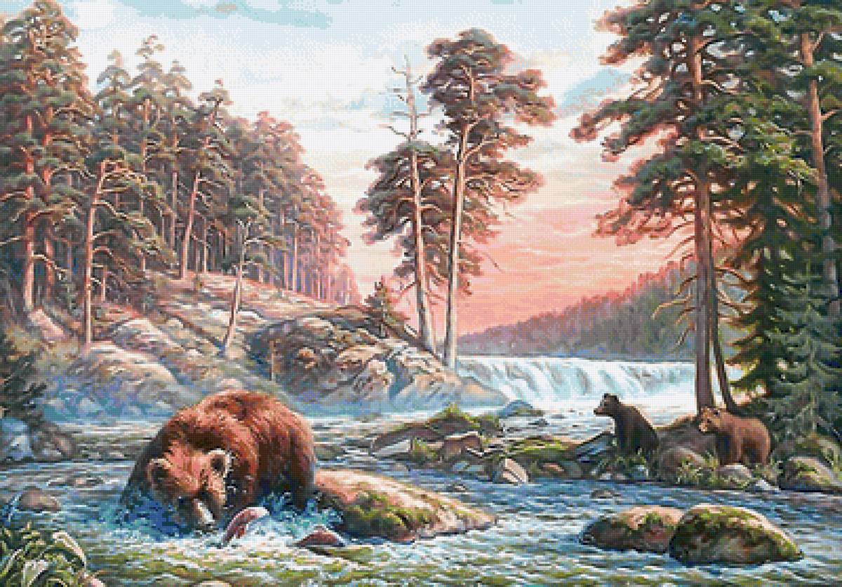 Схемы вышивки, похожие на «Мишки на рыбалке» (№2051096) по сюжету