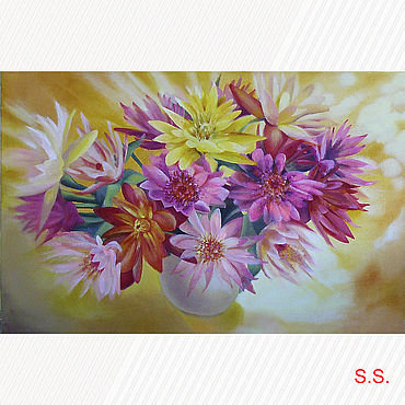 Теги: пейзаж, цветы, кувшин, картина, букет.