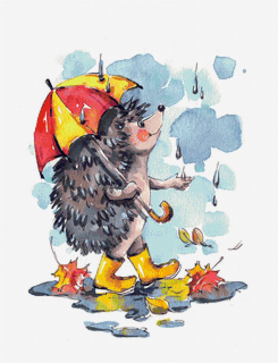 Схемы вышивки, похожие на «Ёжик под зонтом худ. Петунова» (№2054842) по сюжету