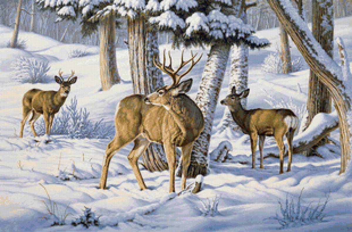Теги: олени, природа, пейзаж, снег, животные, зима, лес.