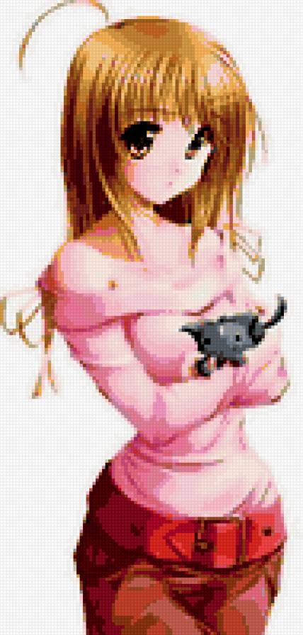 Схема вышивки «Девушка с котенком)» (№207149)