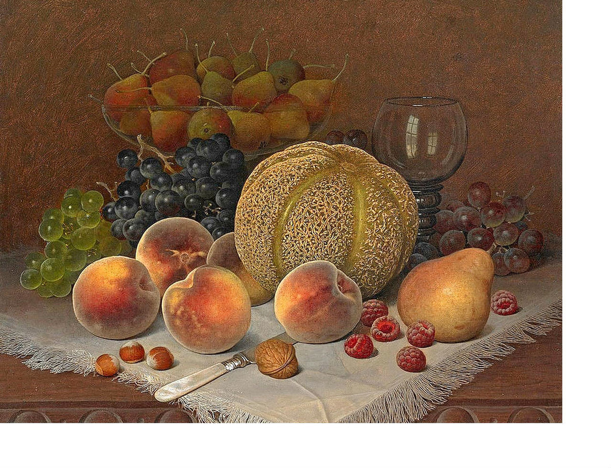 Теги: шампанское, натюрморт, виноград, орехи, бокал, персики.