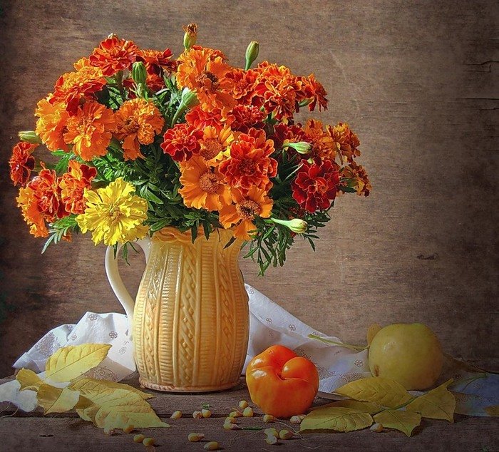 Теги: бархатцы, кошки в цветах, кошка, лето, бабочки, цветы.