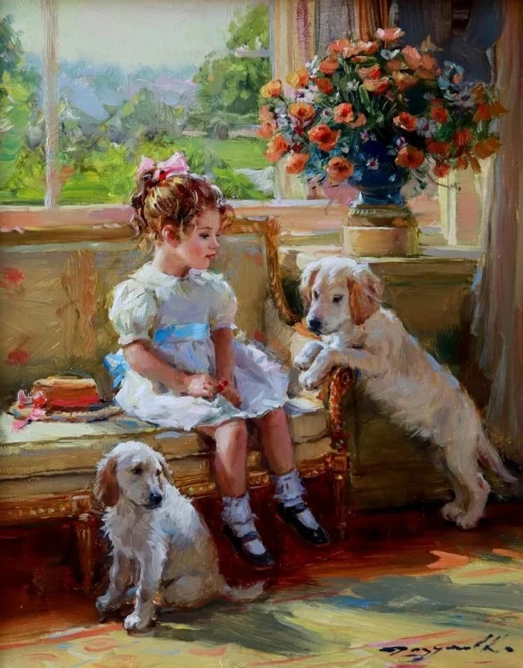 Схемы вышивки, похожие на «Девочка с собаками» (№2094003) по сюжету