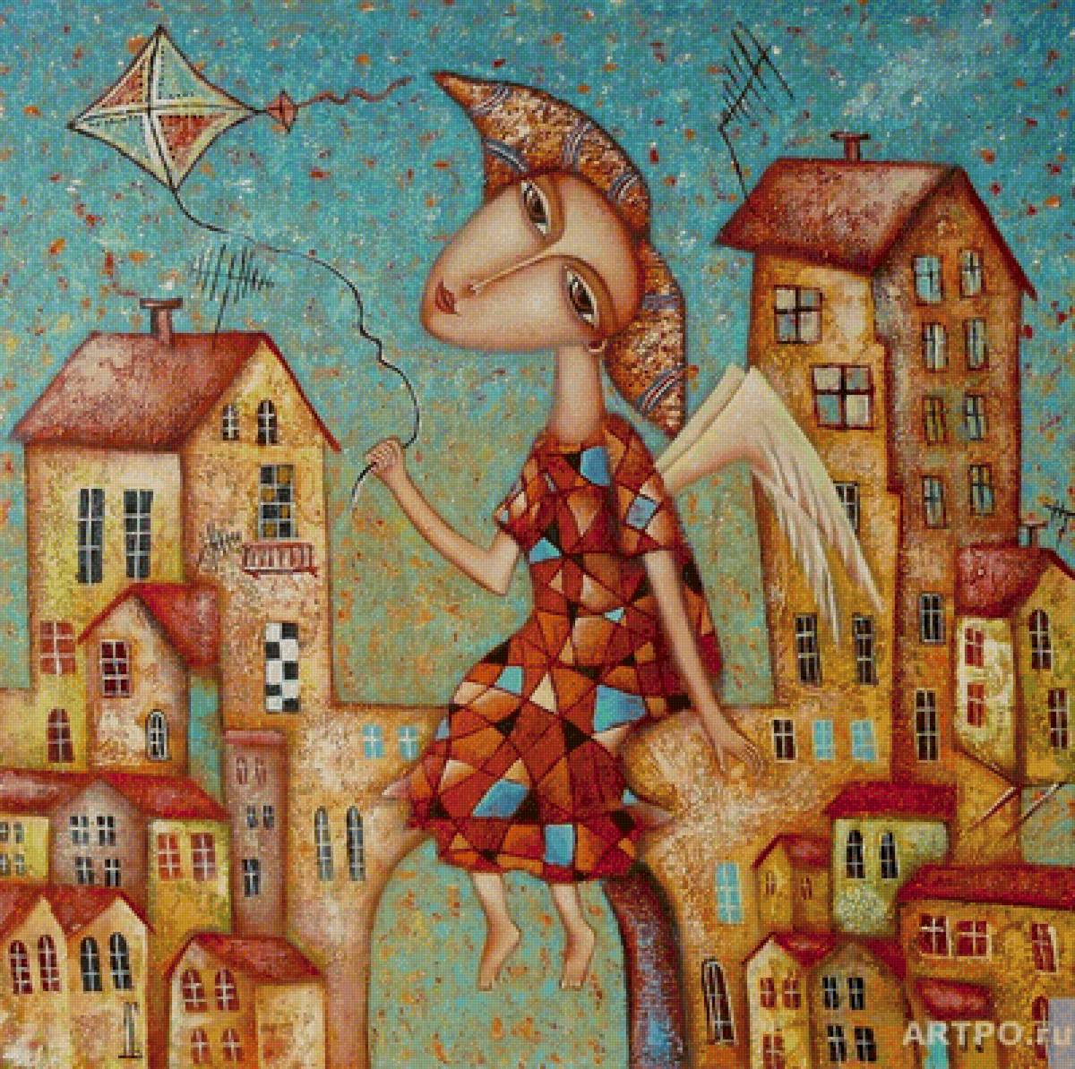 Теги: девушка, город, наив, дом.