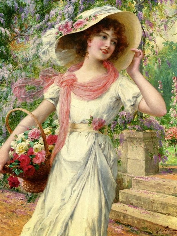 Схемы вышивки, похожие на «Девушка с корзиной роз» (№2100944) по сюжету