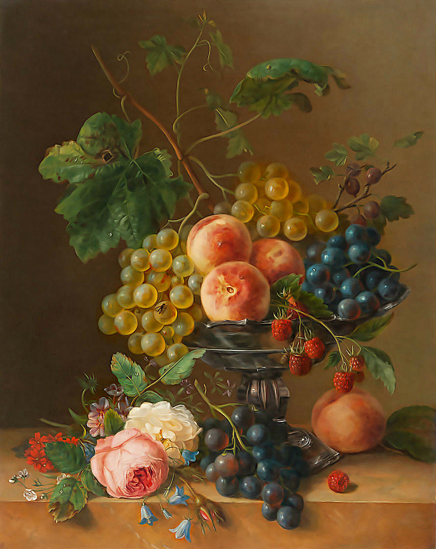 Теги: натюрморт.фрукты.виноград.персики.