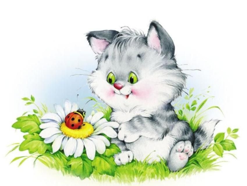 Схема вышивки «кот и божья коровка» (№2111685)
