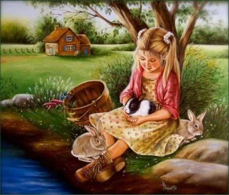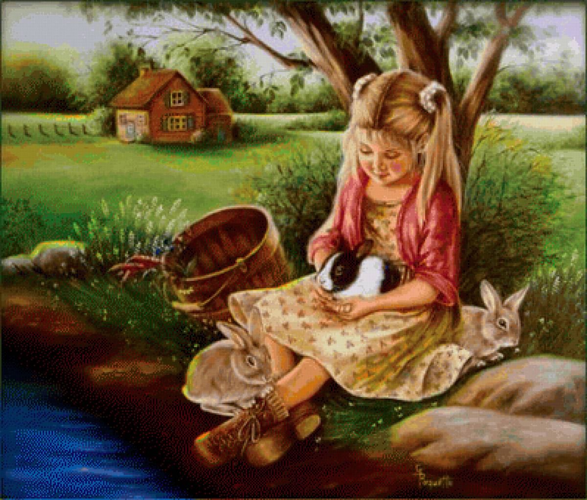 Схема вышивки «девочка с кроликами» (№2115875)