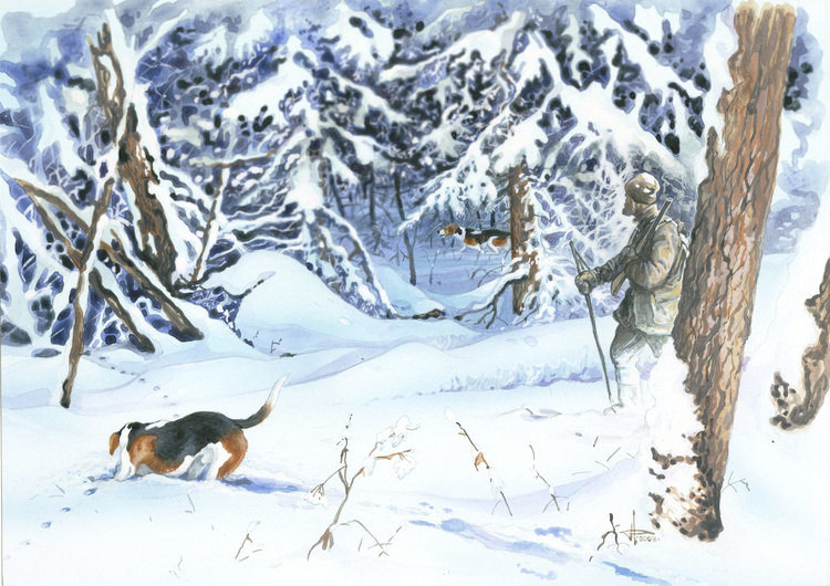 Теги: лес, поляна, осень, всадники, лошади, охота. собаки.