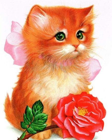 Комментарии к схеме вышивки «котенок с розочкой» (№2132649)