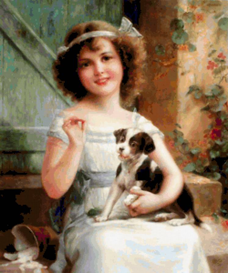 Схемы вышивки, похожие на «девочка с собачкой» (№214949) по сюжету
