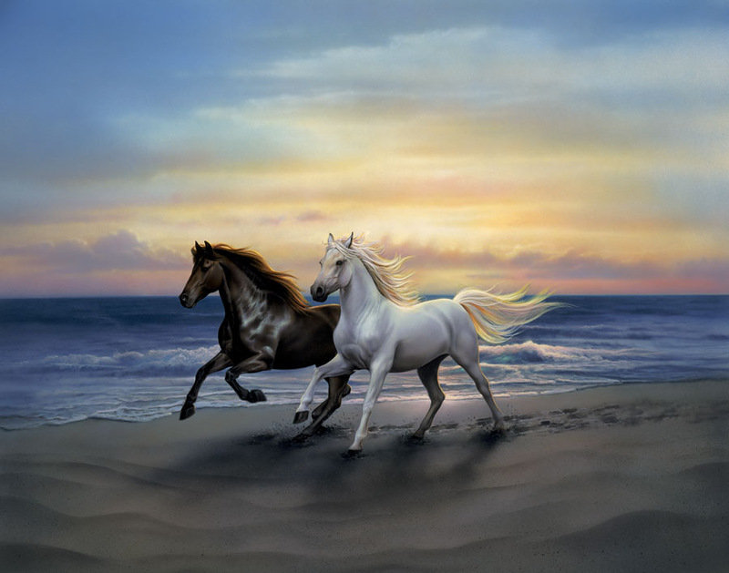 Теги: единорог, лошади, животные, кони, графика.