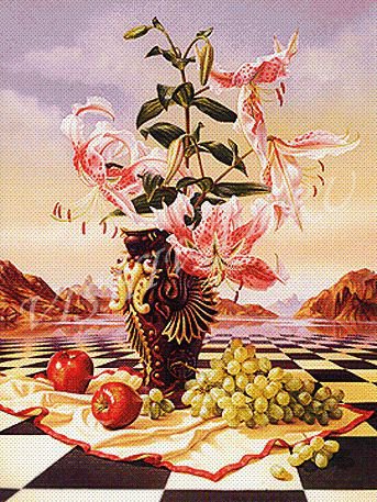 Теги: ваза, букет, натюрморт., лилии, цветы.